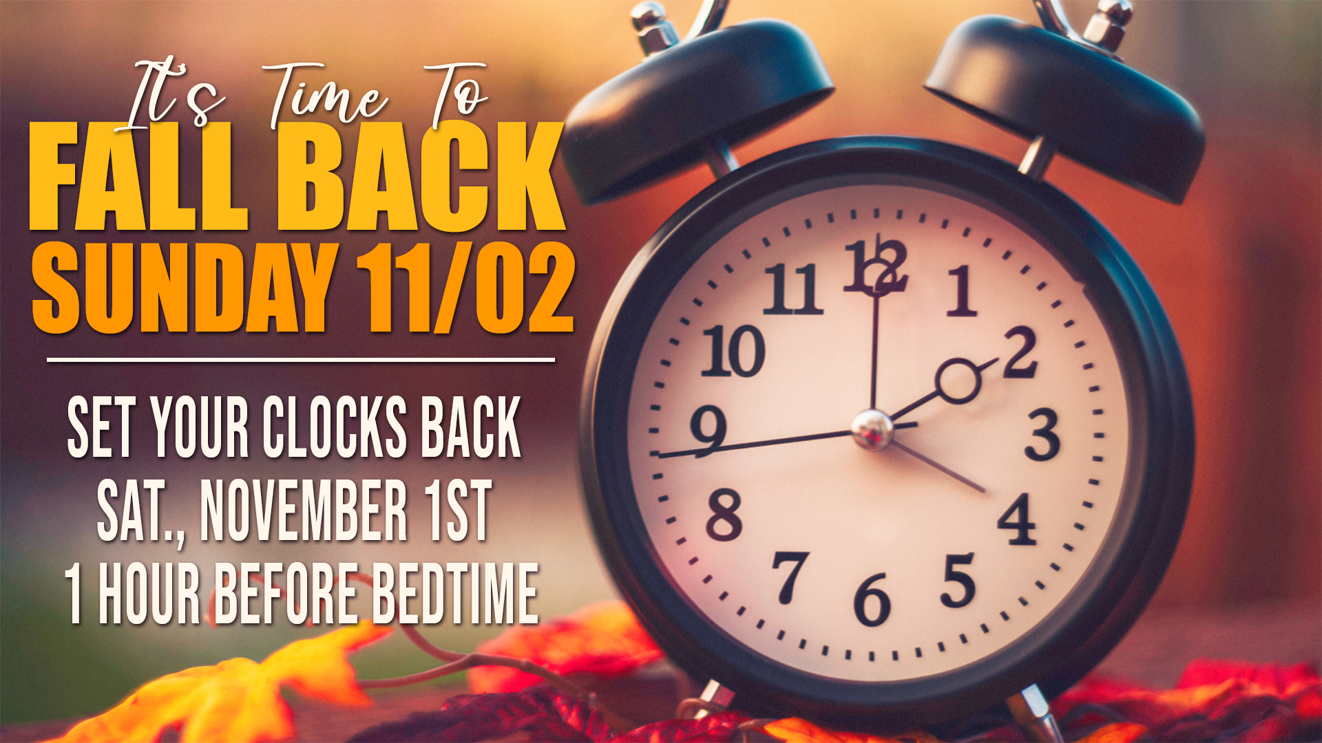 Set your clocks back 1 hour before bedtime Saturday 11/01!