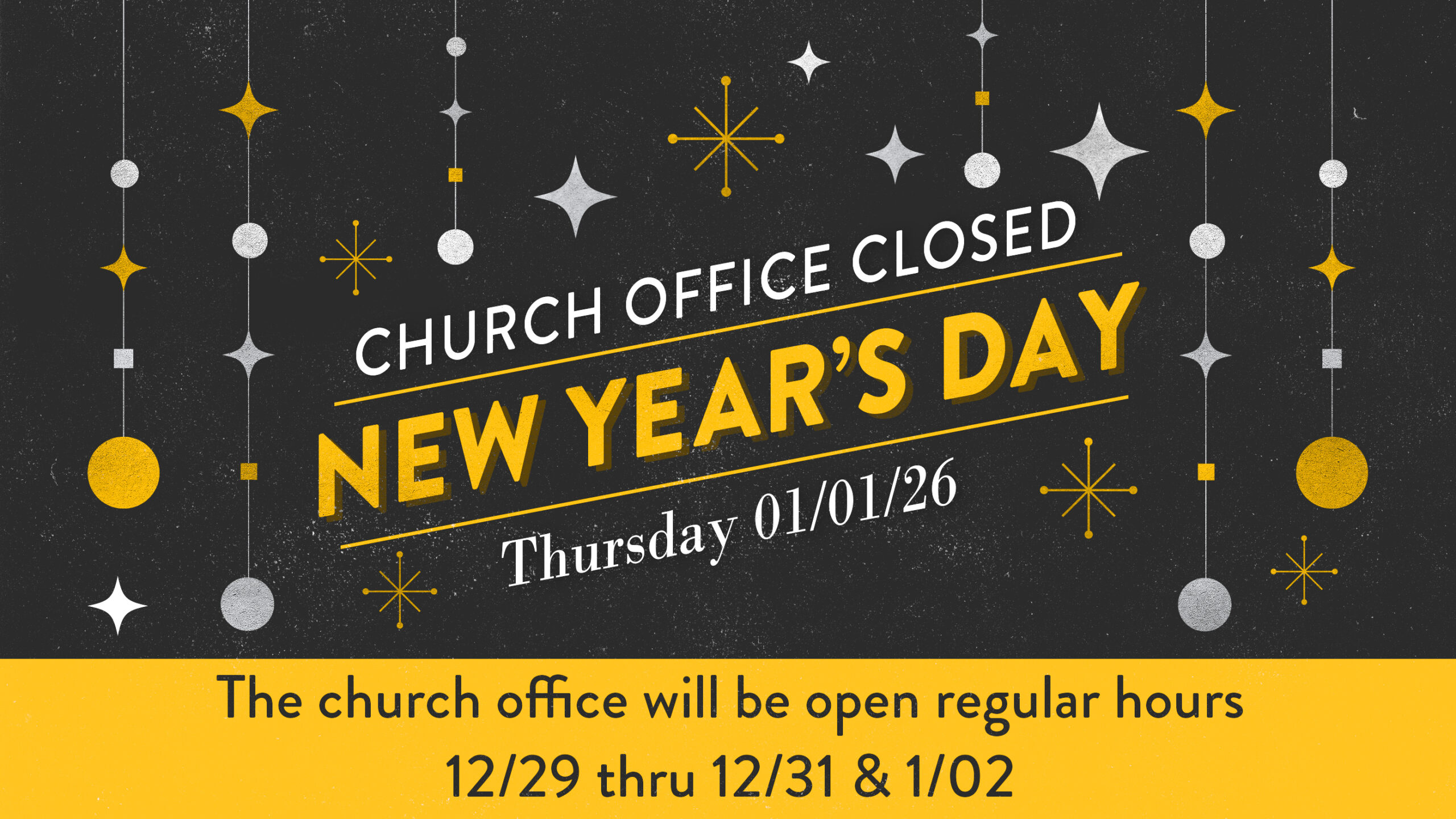 The Church Office will be open regular hours 12/29-12/31 & 1/02