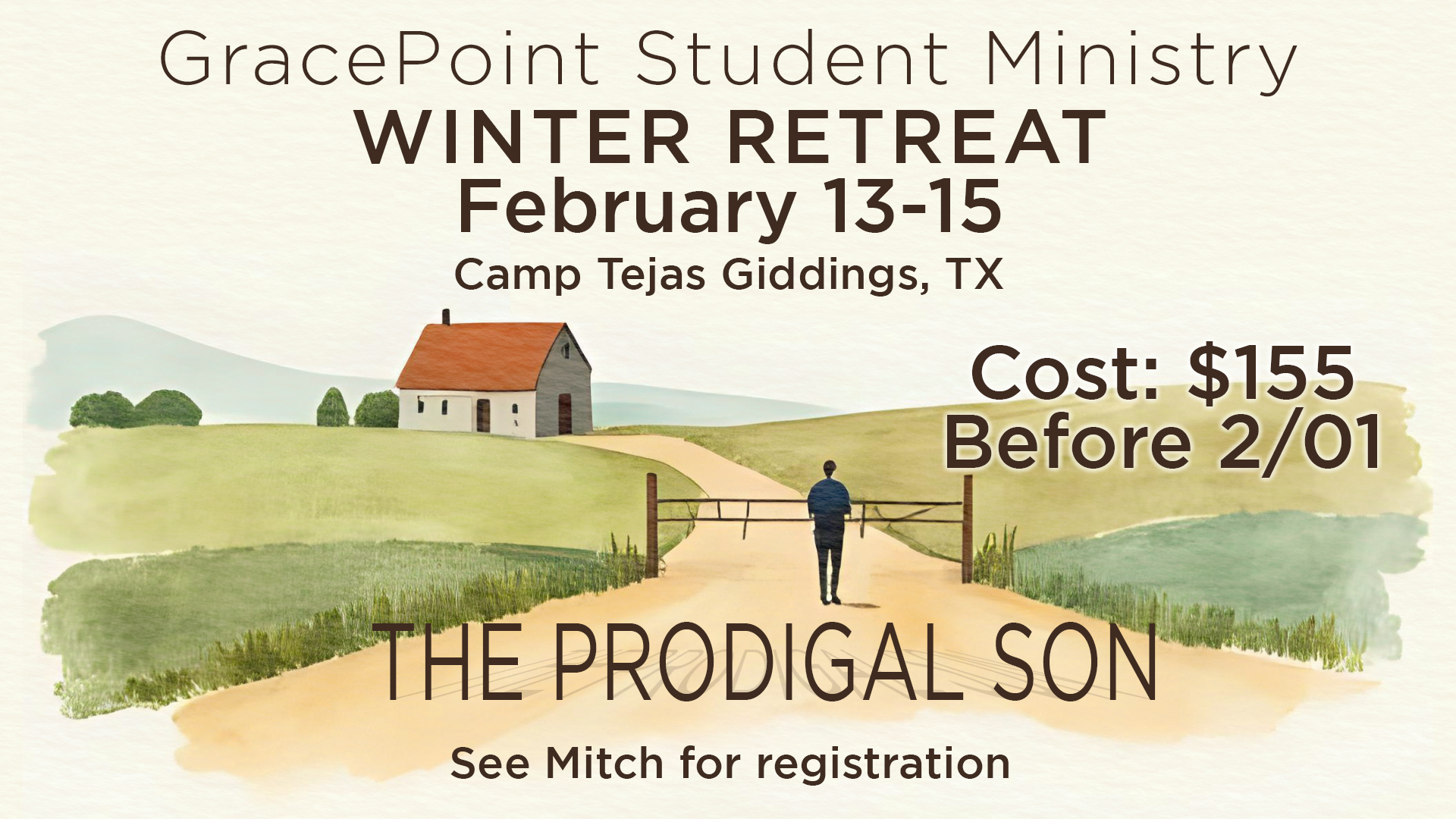 - SUNDAY MORNING: 9:30am Bible study in GPSM area upstairs & 10:45am all 7-12th graders attend main worship service